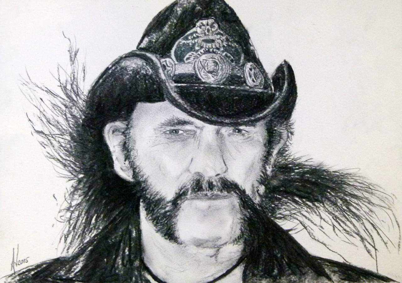 Portret Zwart/wit Tekening Houtskool Lemmy