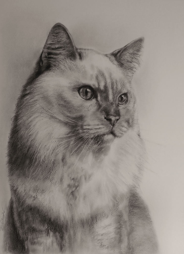Portret Dier Kat Realistisch Pastel Houtskool Cat Charcoal Animal