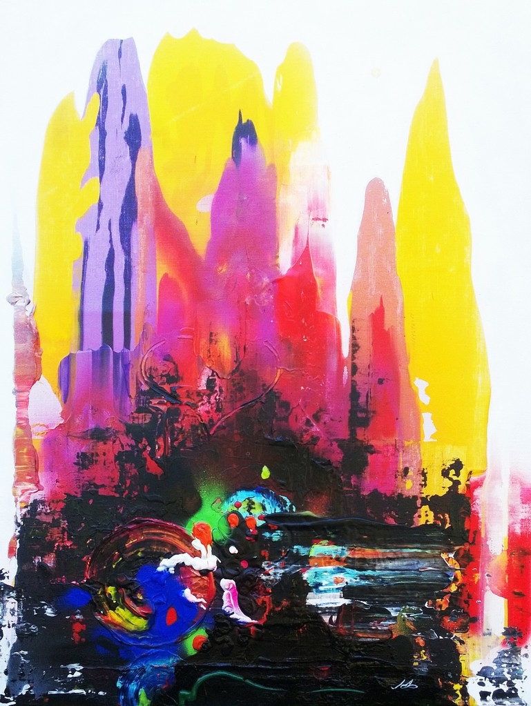 Wit Abstract Rood Oranje Geel Zwart Acryl Yellow Canvas Doek Lagen Red Lichtblauw Black White Lichtpaars Orange Fuchsia Lichtgroen Donkerblauw Donkergroen Spuitbus Donkerpaars Layers Lightblue