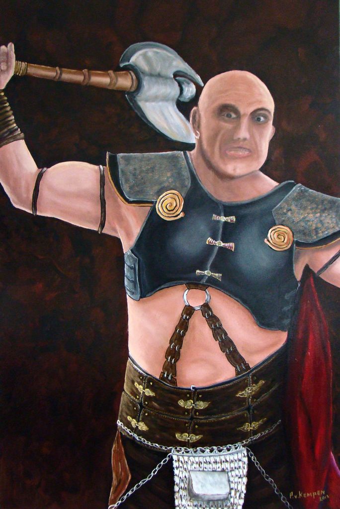 Wraak staat op zijn gezicht te lezen Deze Attila mag er wezen Zijn ogen “spugen” vuur Bij de tegenstander: het laatste uur?