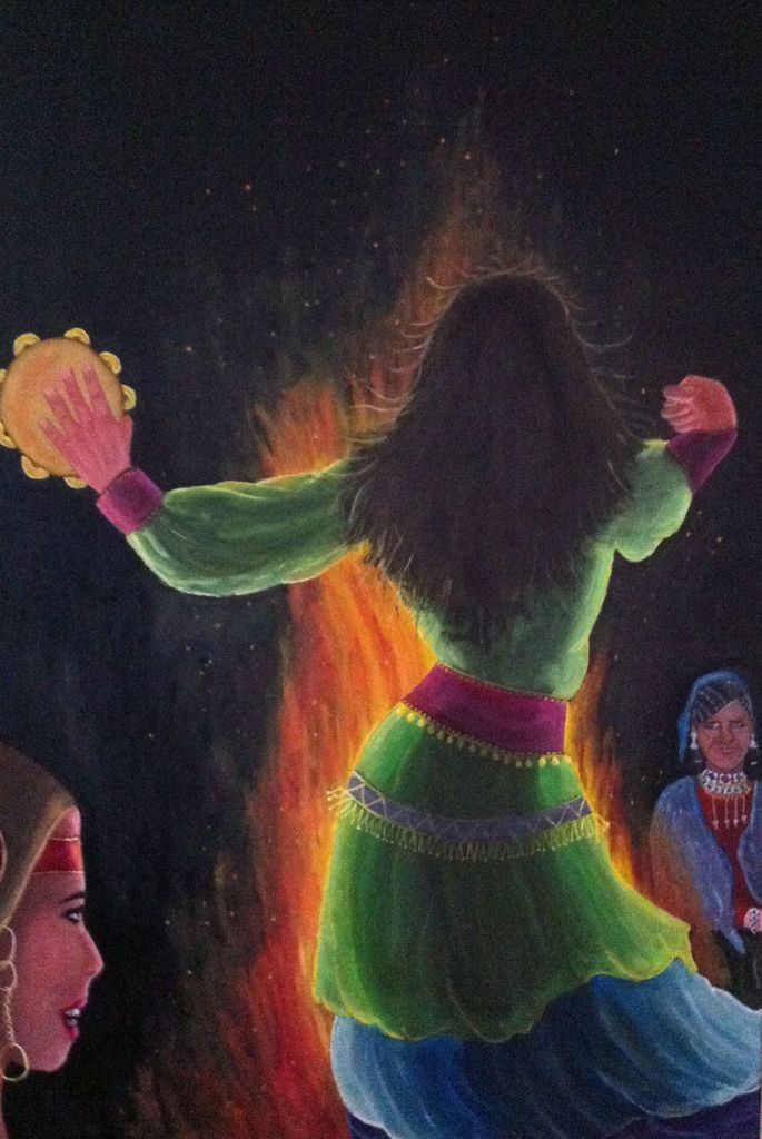 Dicht bij de warmte van het vuur Dansend in het nachtelijke uur Gitaarmuziek zang en een nachtelijke dans Zo heeft het mooie in het leven een kans