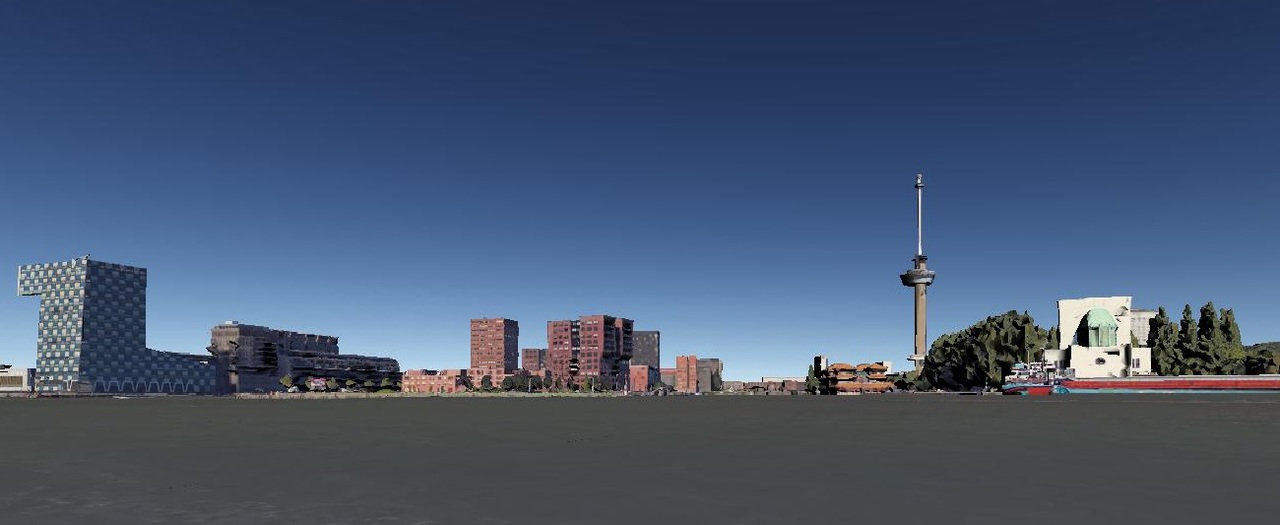 Surreeel gezicht op de Euromast Rotterdam vanaf de Maas.