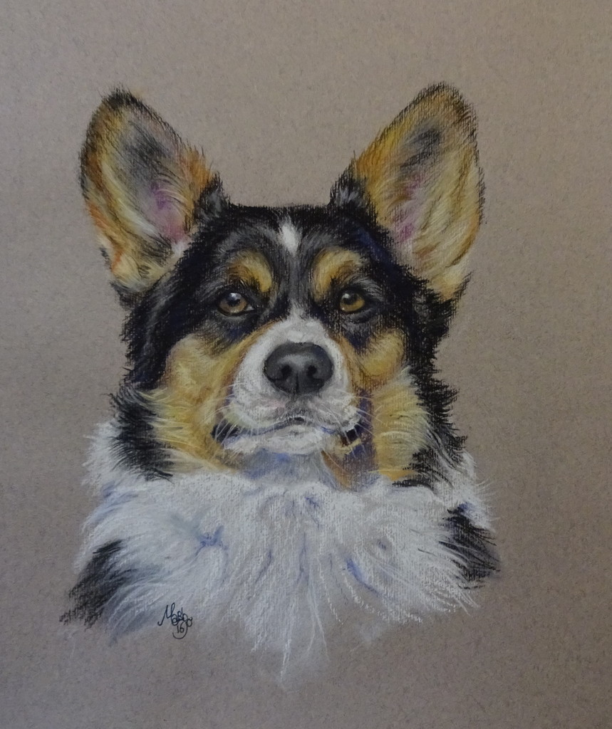 Schilderij Pastel Marbo Hond Welsh Corgi Cardigan Kieran