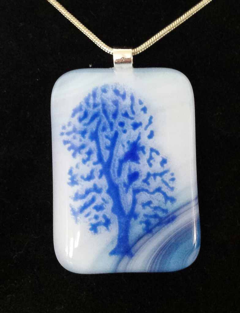 Wit Blauw Glas Fusing Glaskunst Boom Hanger Sieraad Fusen