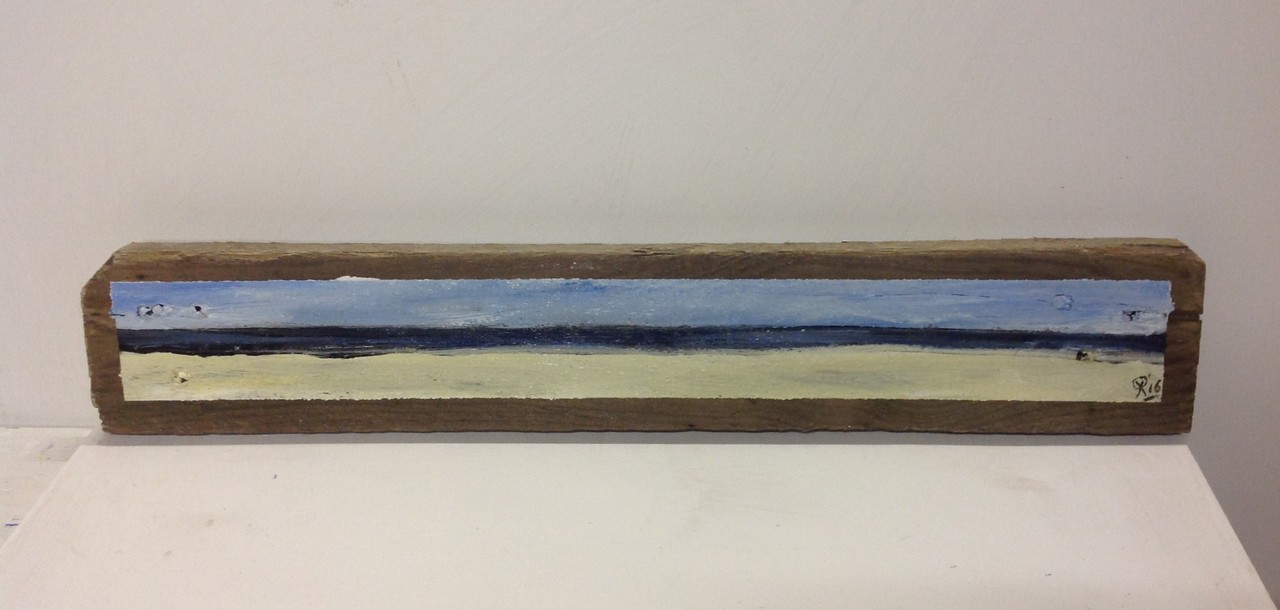 Schildering op hout. 12 x 50 x 2 cm.