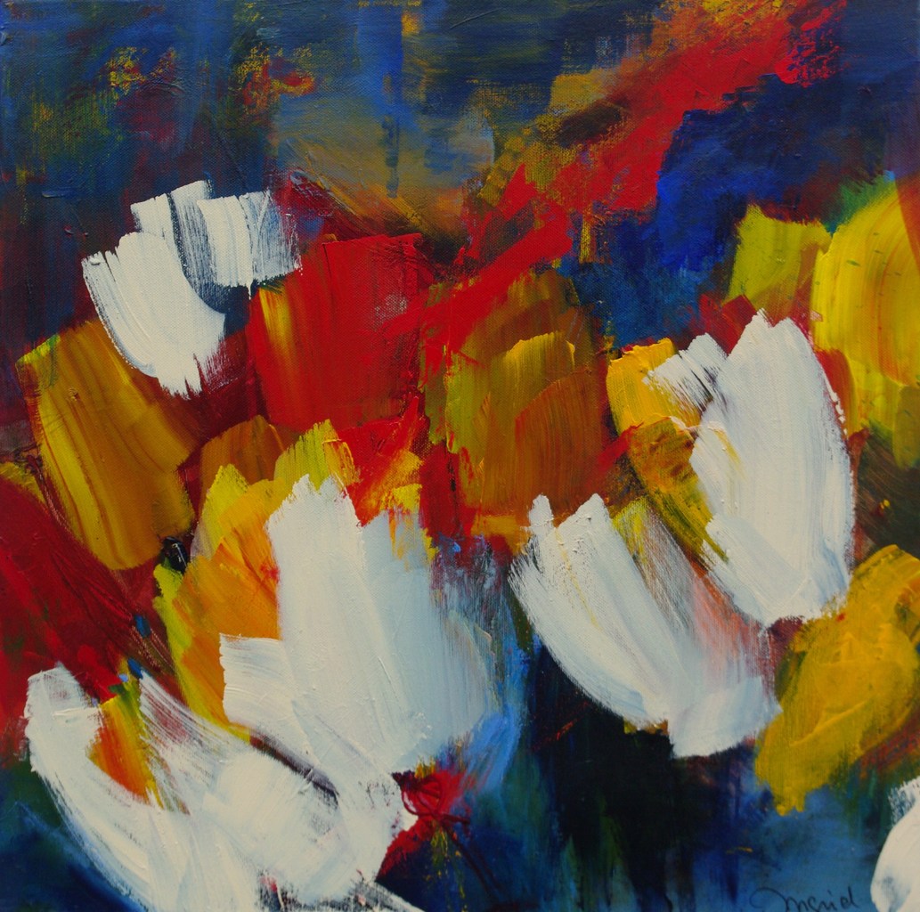 Ingrid Swinkels - van der Weijden (1952) Durf, lef, dynamiek......acryl. Al jong begonnen met tekenen en schilderen. Later aquarelleer-lessen gevolgd bij Jo Manders en Willem van der Velden. Puur uit nieuwsgierigheid en op zoek naar nieuwe technieken ben ik de 5- jarige opleiding aan de academie voor schone kunsten in Arendonk gaan volgen met daarna 2 jaar specialisatie. Het is telkens weer een grote uitdaging en spannend op het doek te vertalen, wat er in je hoofd leeft en borrelt. Vaak is het een gevoel groter dan jezelf.... Kwetsbaar, onrustig, zoekend, niet geordend.... Het leuke is mezelf steeds te verrassen met wat er gaat gebeuren! Ik wissel de wat 'strakkere bijna grafische periodes", waarin het onverwachte lijnenspel me zeer intrigeert, af, met 'los' kleurrijk, figuratief - ab