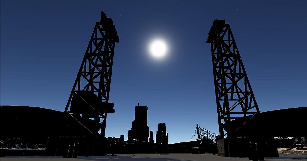 Surreeel beeld van de Hefrbrug Rotterdam bij nacht.