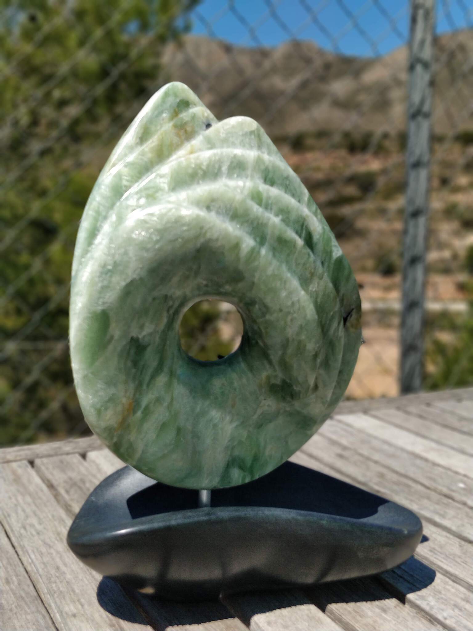 Het "oog" is gemaakt van Chinees speksteen. Het "bootje" van Serpentijn.