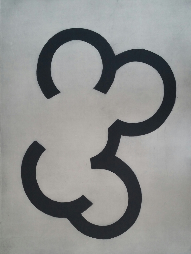 Droge naald, gebruik makend van mezzotint gereedschap. Wolken, implosie. Oplage 5