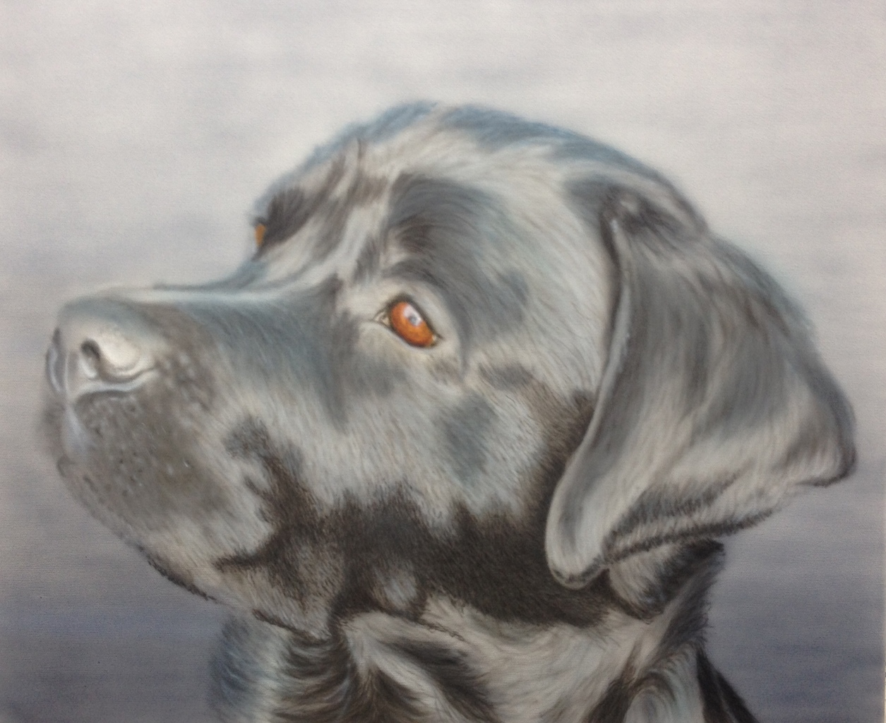 Hond Storm Labrador Rottweiler Kruising Airbrush Acryl Olieverf Doek Canvas Zwart Glans