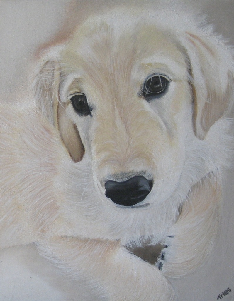Ik ben Tries van der Meulen-Provily. Ik ben geboren in 1958. Ik ben begonnen met aquarelleren maar al snel merkte ik dat ik toch beter kon werken met olieverf. Vanaf 2007 ben ik begonnen met schilderen met olieverf op linnen. Ik ben een fijnschilder en schilder veel portretten van mens of dier. Dat zijn bijna allemaal opdrachten. Ook schilder ik af en toe vrij omdat ik soms exposeer en daar eventueel wat kan verkopen. Of ik schilder vrij, voor mijzelf. Ik vind het heel belangrijk dat de opdrachten heel goed lijken. Als het ware moet de ziel erin zitten. Daarin ligt mijn lat heel hoog. Als mijn opdrachtgevers zeggen hij/zij of het is het helemaal, dan ben ik echt tevreden.