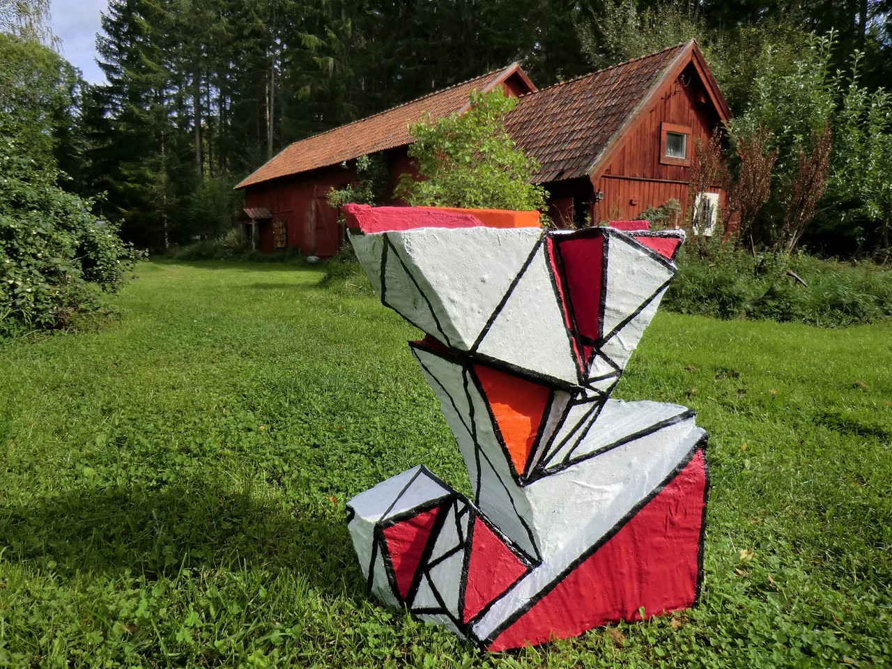 Wit Rood Oranje Zwart Acryl Vrouw Hart Mixed Media Red Black Female White Driehoek Orange Tempera Prisma Spuitbus Spraycan Tempex Hearth Frigolite