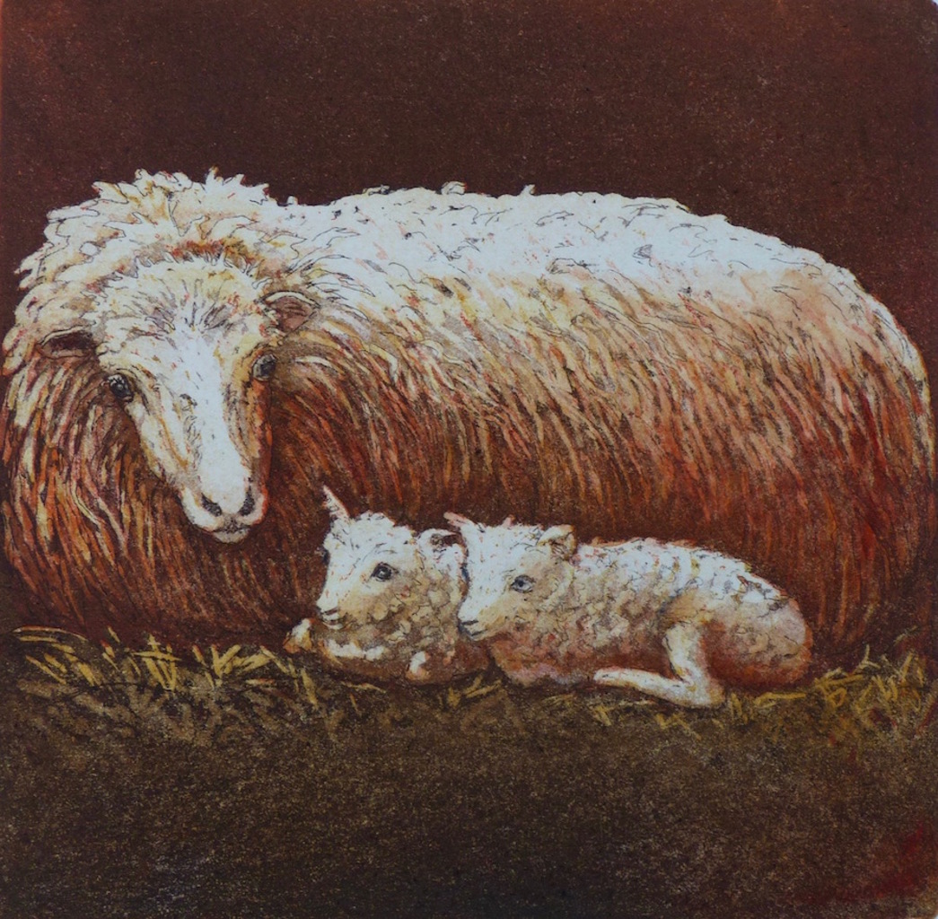 Liggende ooi met lammeren