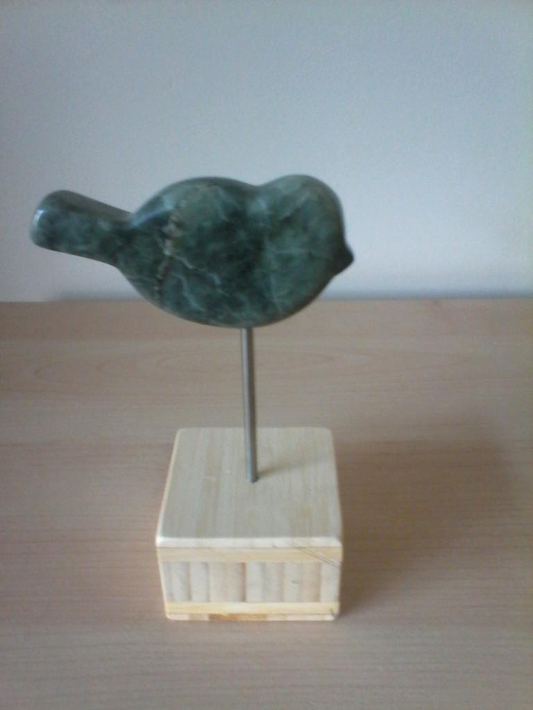 vogeltje uit braziliaans speksteen op hout