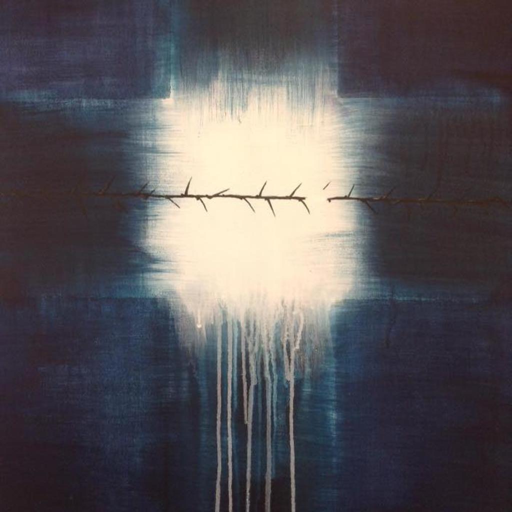 Dit werk is een kruis, waarbij op de kruising ervan het licht straalt. Verder heb ik de doornenkroon in een lijn gezet, die onderbroken is, omdat het is volbracht! Vandaar de naam "Bevrijding"