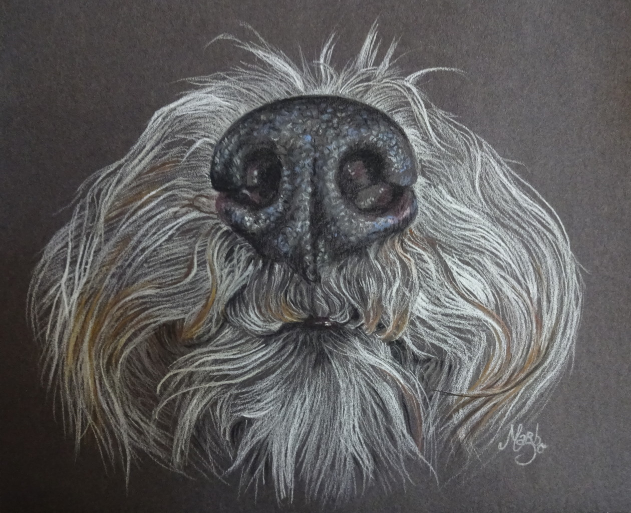 Bearded Collie Neus Marbo Schilderij Pastel Fabercastell Pitt