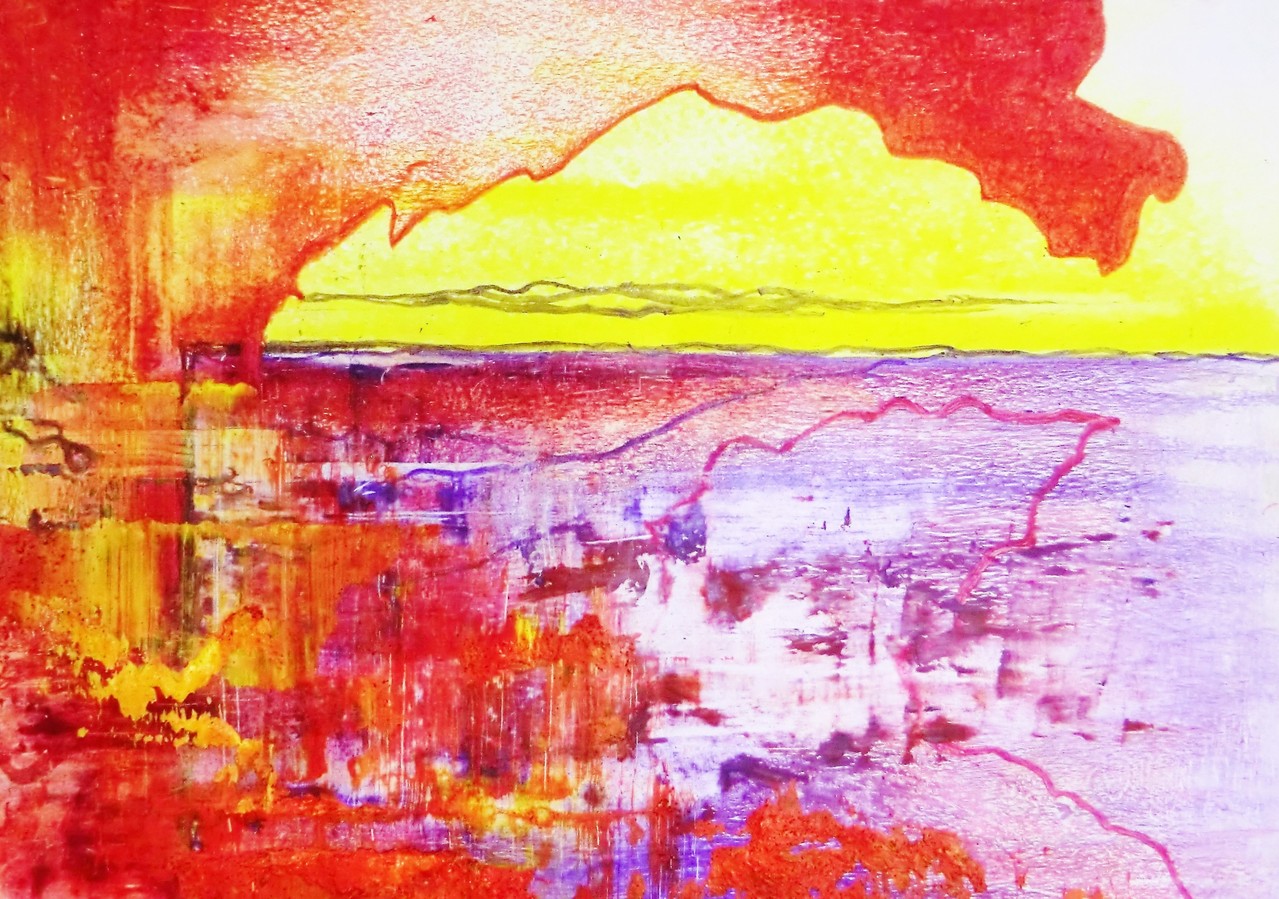 Abstract Rood Oranje Landschap Acryl Paars Papier Red Purple Landscape Paper Orange Wasco Yellowater