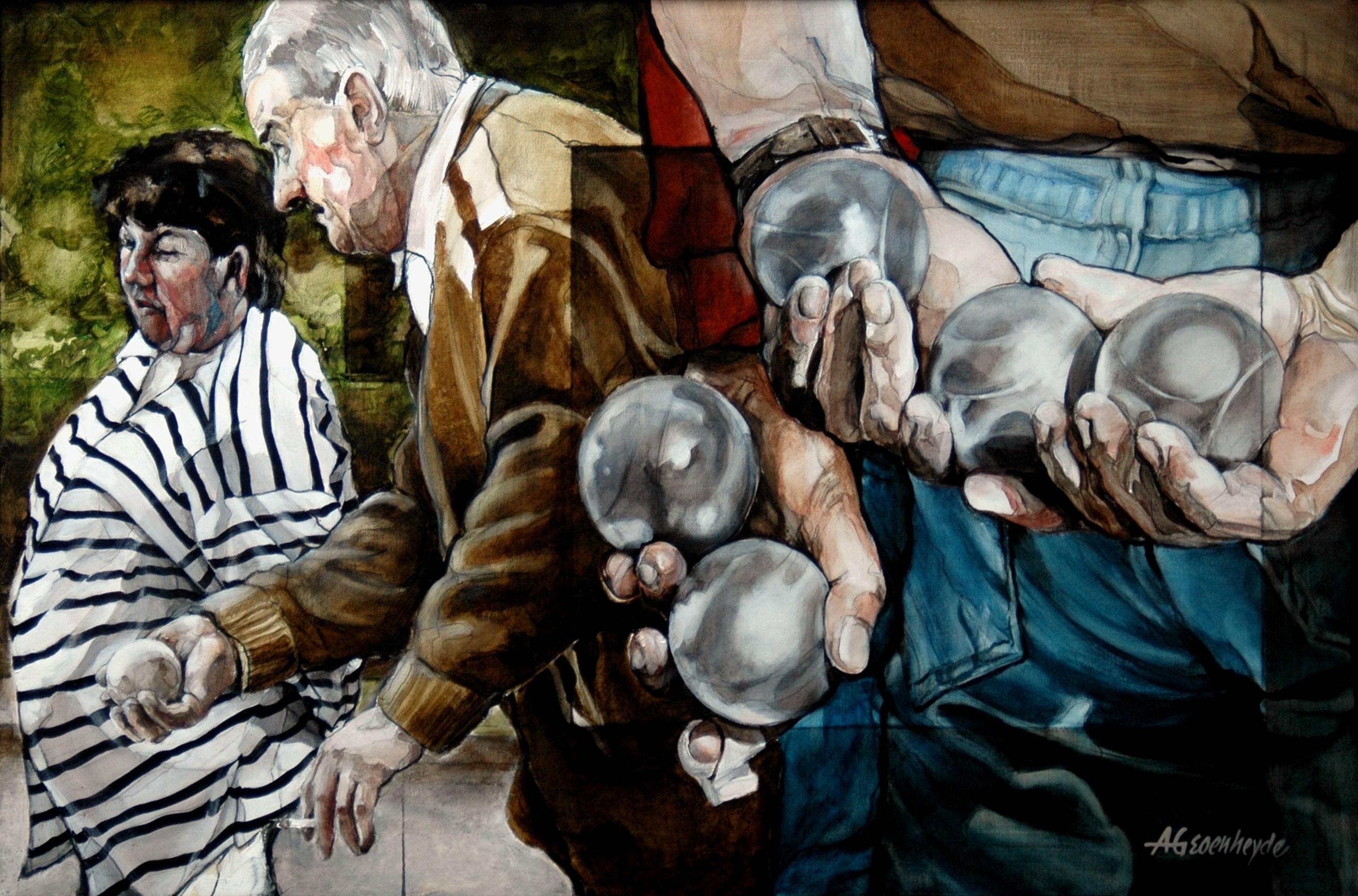 Albert Groenheyde (1939) studeerde aan de Koninklijke Academie voor Beeldende Kunsten te Den Haag. Daarna werkte hij als grafisch ontwerper. Pas de laatste jaren ontwikkelt hij zich als beeldend kunstenaar. Groenheyde is een scherp observator. Zijn stijl van schilderen is fors en krachtig, met subtiel lijngebruik. Soms massief, dan weer transparant. Zoals een musicus zijn instrument bespeelt. Zijn schilderijen zijn onontkoombaar. Ze zijn duidelijk aanwezig en vragen om aandacht.