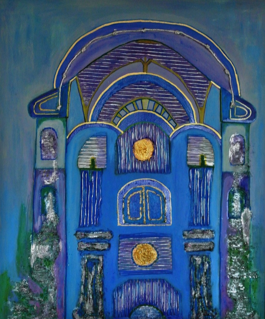Blauwe Tempelpoort, omsloten door het koord met de negen knopen, gemaakt voor het Gorcums Museum en de tentoonstelling over vrijmetselarij. Zie jacobamandala.nl