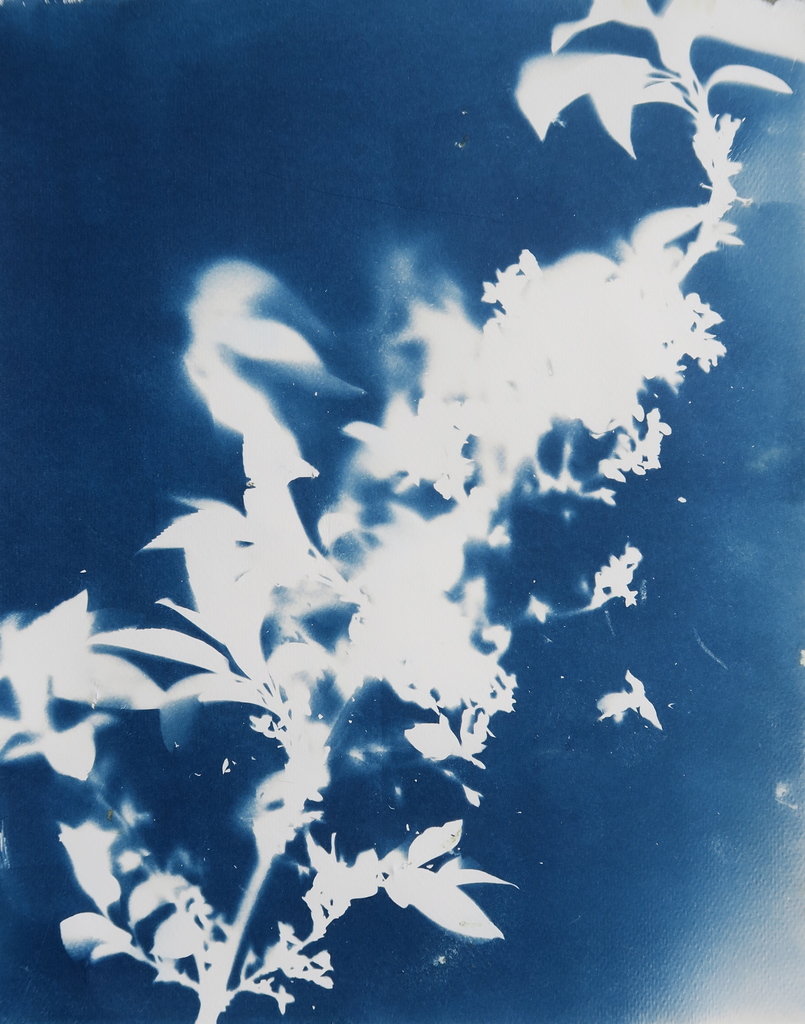 Blauw Papier Tuin Op Bloem Voorjaar Cyanotype Bloeitijd