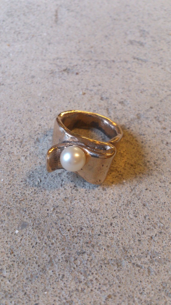 bronzen Minimo ring met zoetwaterparel unicum