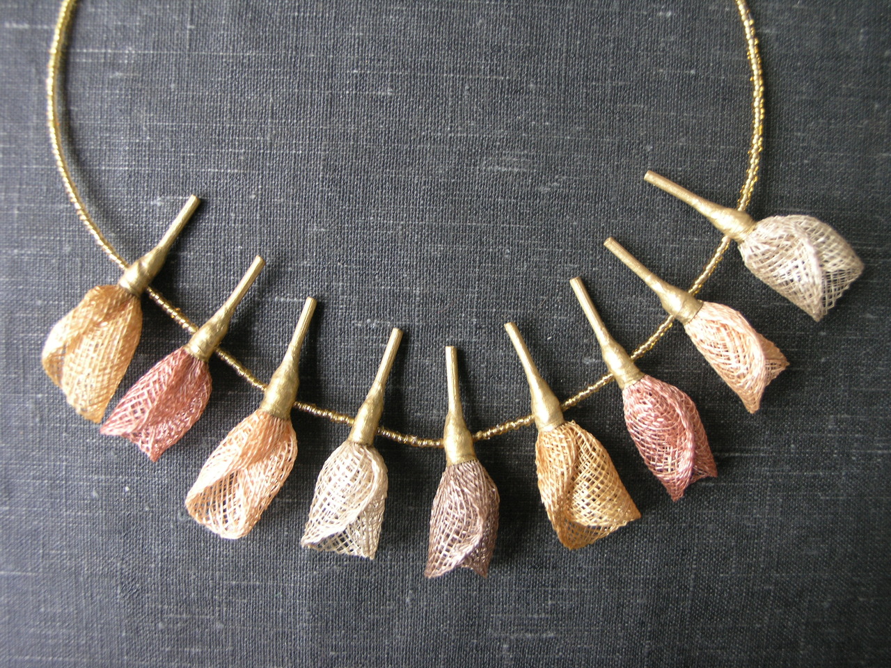 Halscollier Sireaad Kralen Tulpen Naturel Beige Goud