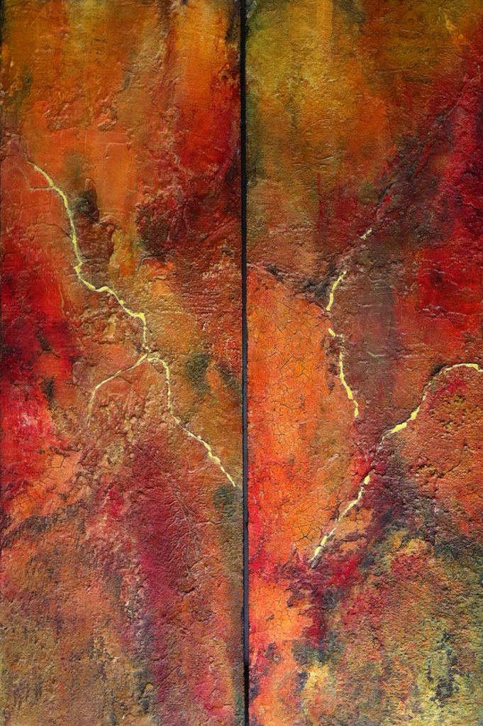 Rood Geel Oker Groen Tekst Zand Epoxy Crackelee