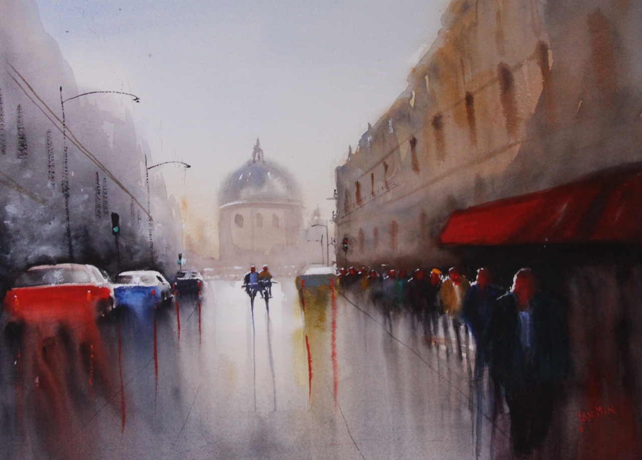 watercolors met passie, licht en mystieke atmosfeer, waarbij de verbinding tussen toeschouwer en werk bereikt wordt midels deze emoties.