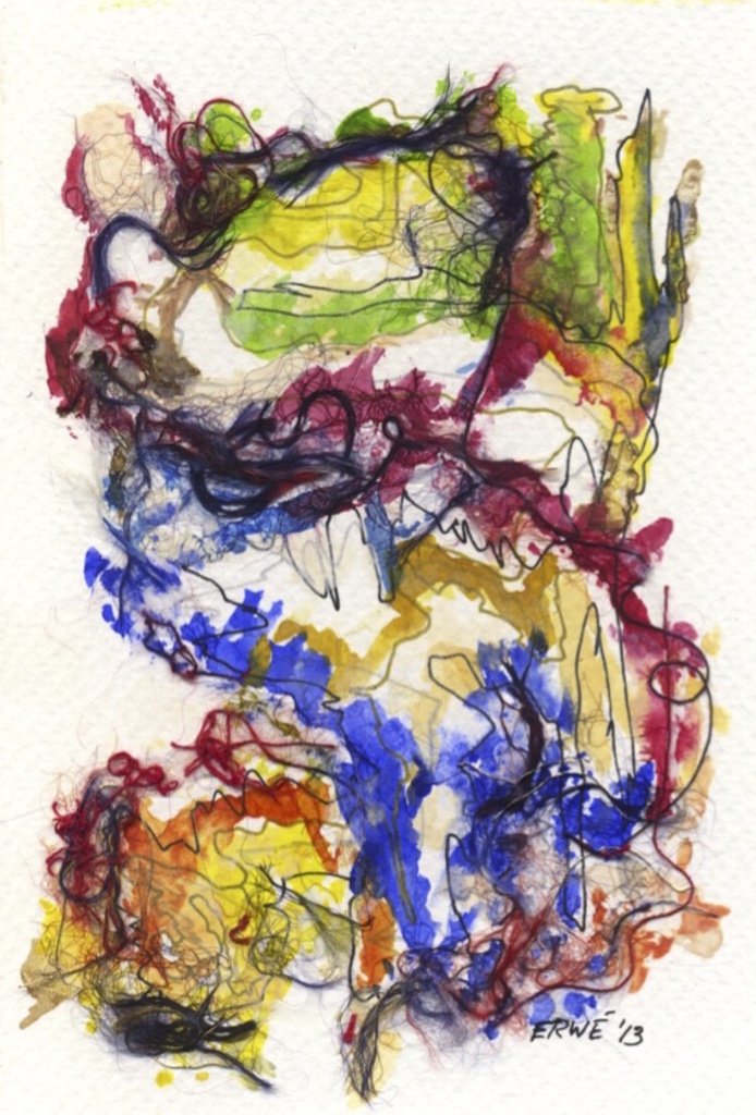 Verwarrend-ontwarrend (aquarel/potlood/zijdedraad)