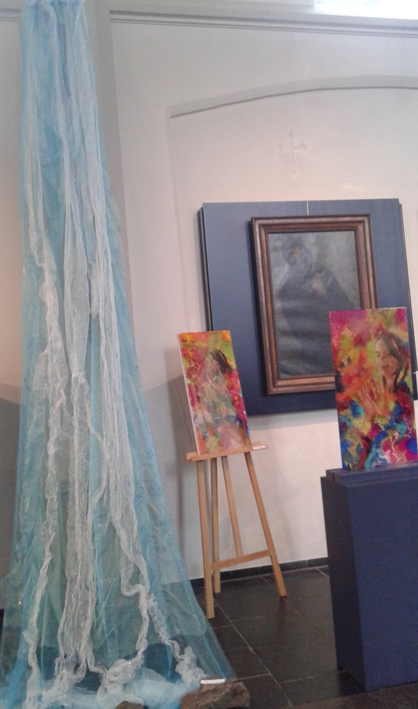 Dit werk is gemaakt nav de expositie Reflectie. Hedendaagse, lokale kunstenaars , herbronnen, verbeelden, vertalen, religieus werk van WIEGERSMA. Het schilderij van Wiegersma, De doop in de Jordaan,