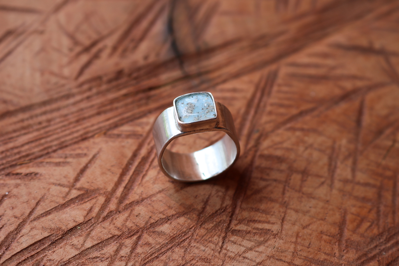 askraal in zilveren ring verwerkt. Op maat gemaakt.
