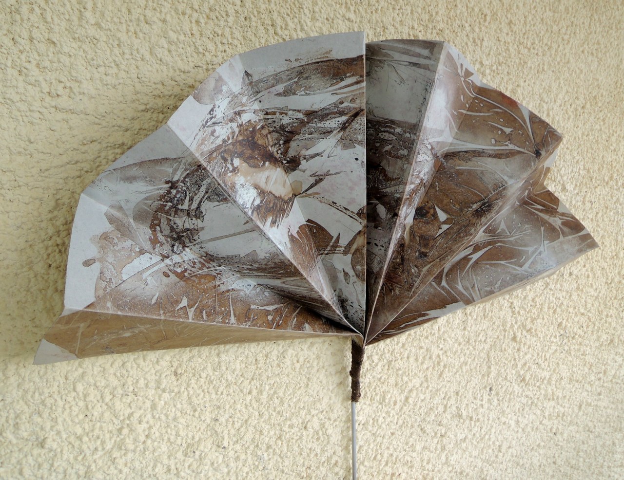 De grote waaiers : Papier behandeld met lijnolie beschilderd met inkten en acrylverf. Tweezijdig. Les grands éventails: Papier traité avec de l'huile de lin, peint avec de l'encre et de la peinture acrylique . . Deux faces The big fans: Paper treated with linseed oil painted with ink and acrylic paint. Double sided Los gran rangos: Papel tratado con aceite de lino pintada con tinta y pintura acrílica. Dúplex
