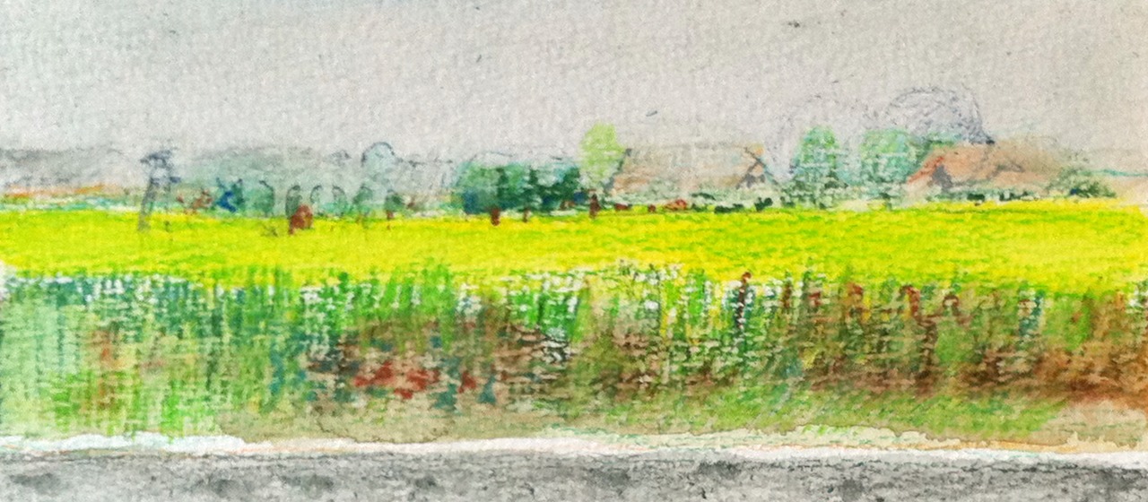 Bloeiend koolzaad, een groenig geel