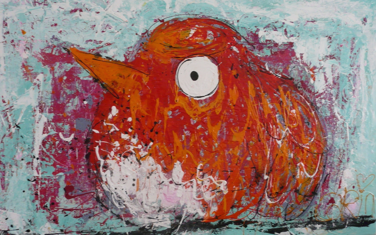 Ik schilder modern abstracte kunst . kunst waar je vrolijk van wordt Ik werk met heel veel acrylverf op doek Het werk is erg kleurrijk. Ik gebruik zoveel acrylverf dat er een 3 d effect ontstaat. Gebruik van warme felle kleuren. Ik lak mijn schilderijen met glans af .thema;s zijn dieren bloemen eten mensen. Humor in mijn werk vind ik erg belangrijk