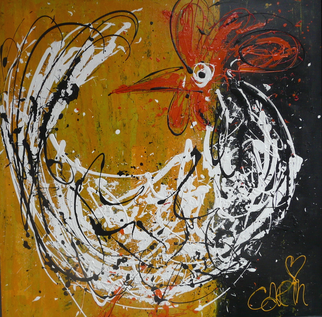 Wit Abstract Modern Rood Geel Zwart Kleurrijk Dier Veel Kip Verf