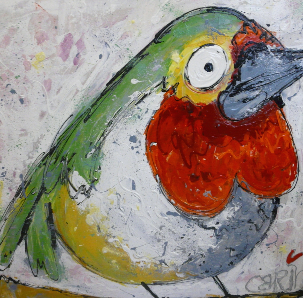 Ik schilder modern abstracte kunst . kunst waar je vrolijk van wordt Ik werk met heel veel acrylverf op doek Het werk is erg kleurrijk. Ik gebruik zoveel acrylverf dat er een 3 d effect ontstaat. Gebruik van warme felle kleuren. Ik lak mijn schilderijen met glans af .thema;s zijn dieren bloemen eten mensen. Humor in mijn werk vind ik erg belangrijk