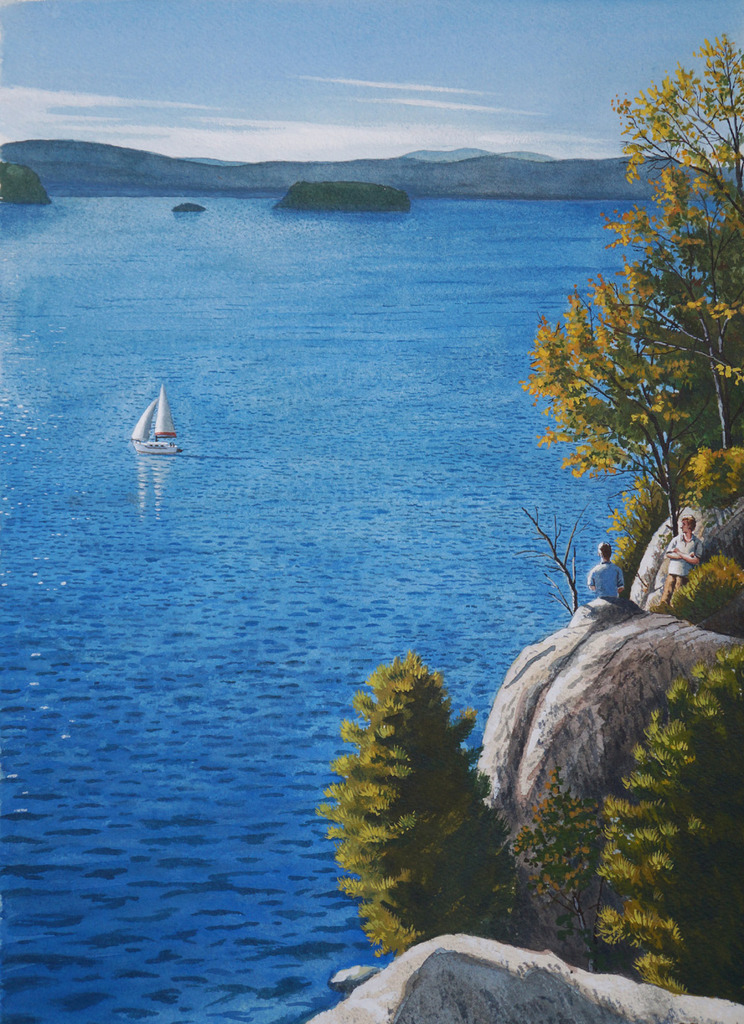 Zee Blauw Blue Water Licht Aquarel Light Lucht Herfst Air Realisme Realism Sea Watercolour Fall
