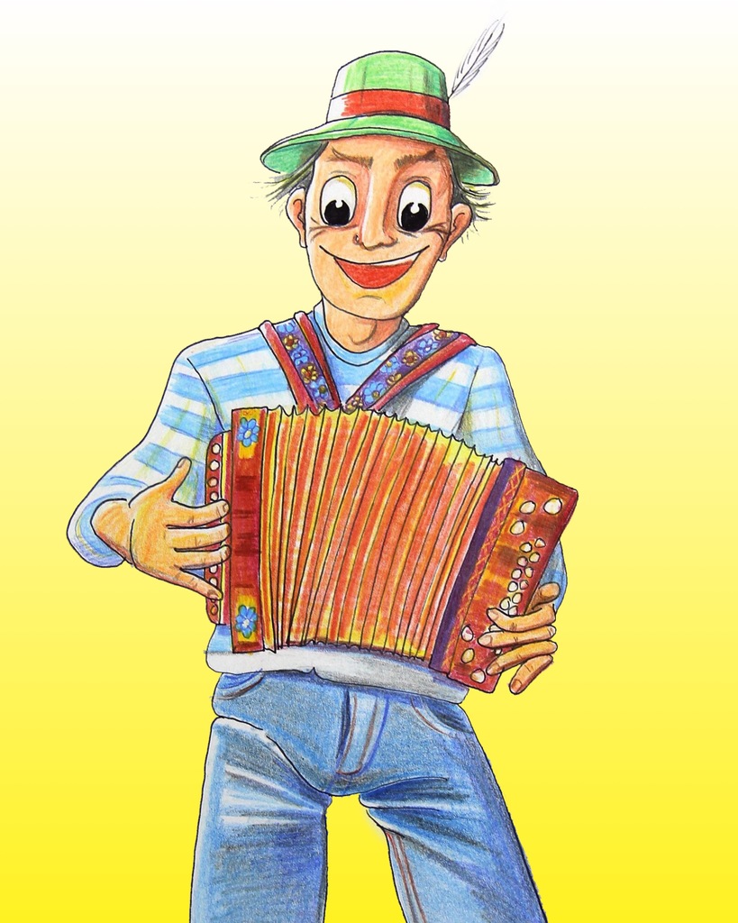 Potlood Kleurrijk Vrolijk De Goede Illustratie Kleurpotlood Accordeon Hut Hat Illustration Pencil Oostenrijk Hoedje Crayon Illustrazione Bandoneon Accordeonist Trekzak Gert Gertdegoede Oostenrijker Hansihinterseer #uden #illustrate