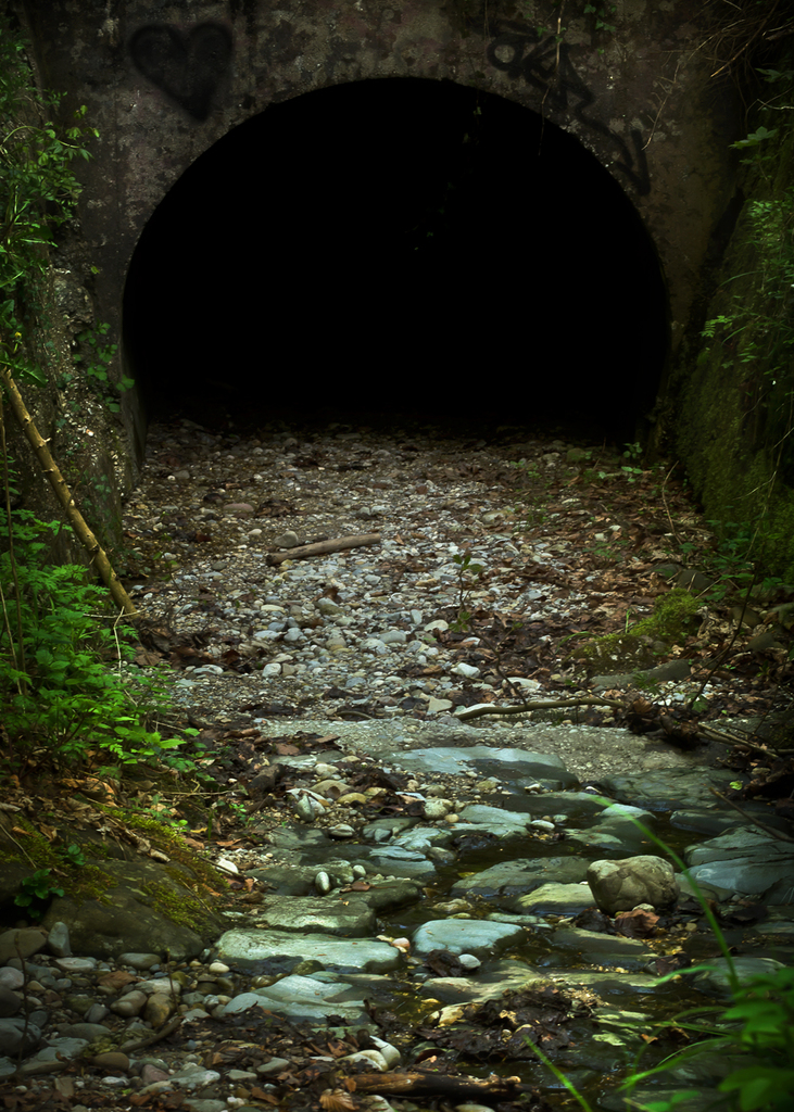 Licht Natuur Duister Tunnel Stenen Ingang Graffiti Duitsland Wolfratshausen