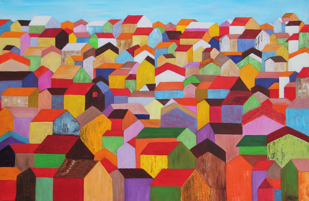 Kleurrijk dorp in een warm land.