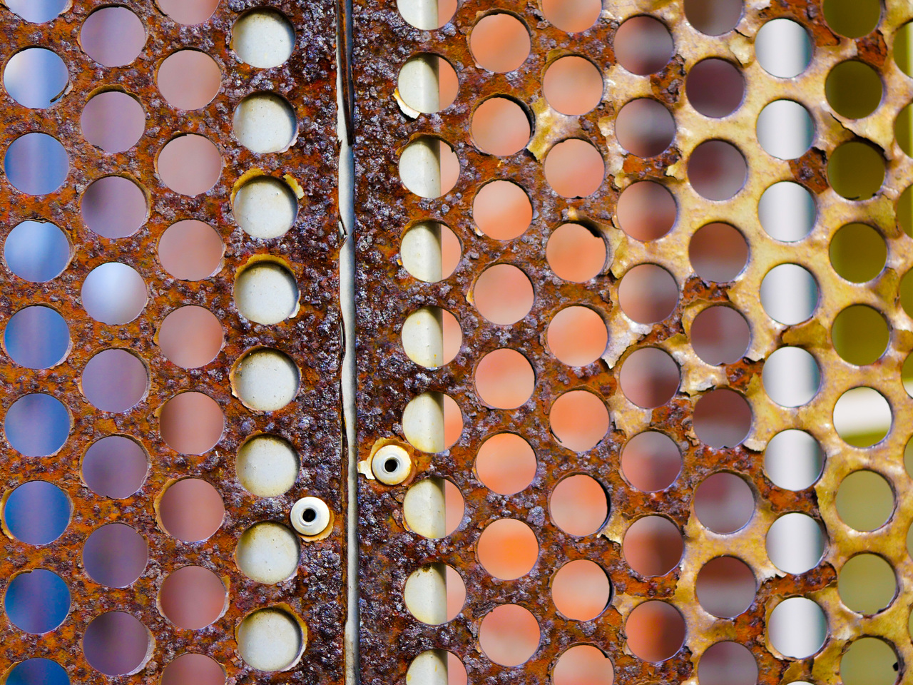 Doorkijkje door roestig hekwerk