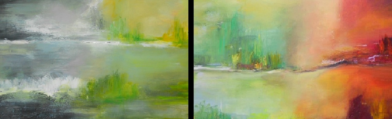 Door haar zoektocht van kleur en lichtinval, het experimenteren met andere materialen brengt Karin een impressie van abstracte tot stand. Zo probeert zij de sfeer en intimiteit van dat moment vast te leggen op doek.