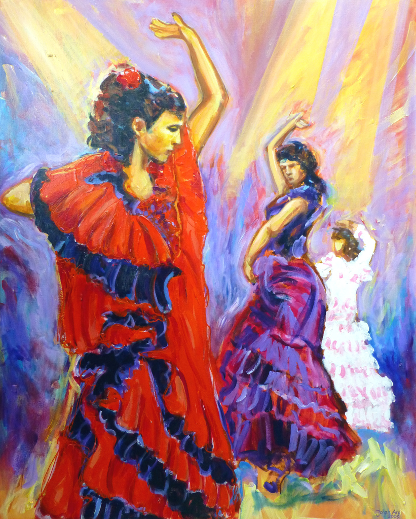 Door het schilderij Spaanse dans ben ik me gaan verdiepen in de Flamenco, mede door de opdracht voor Phoenix, dansschool te Apeldoorn