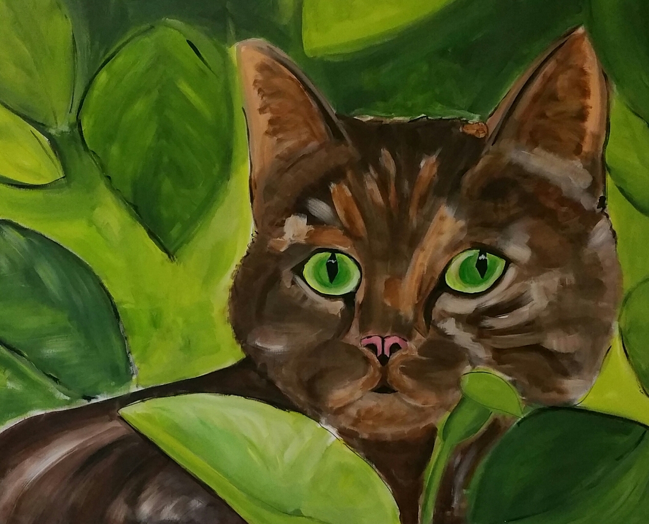 ik miste de kleur van de vrolijke landsschappen toch wel. en komt er dan helemaal vanzelf weer uit. groen en de poes zijn ogen. heerlijk om te kunnen doen. ik heb het van een foto van andre brase na geschilderd.