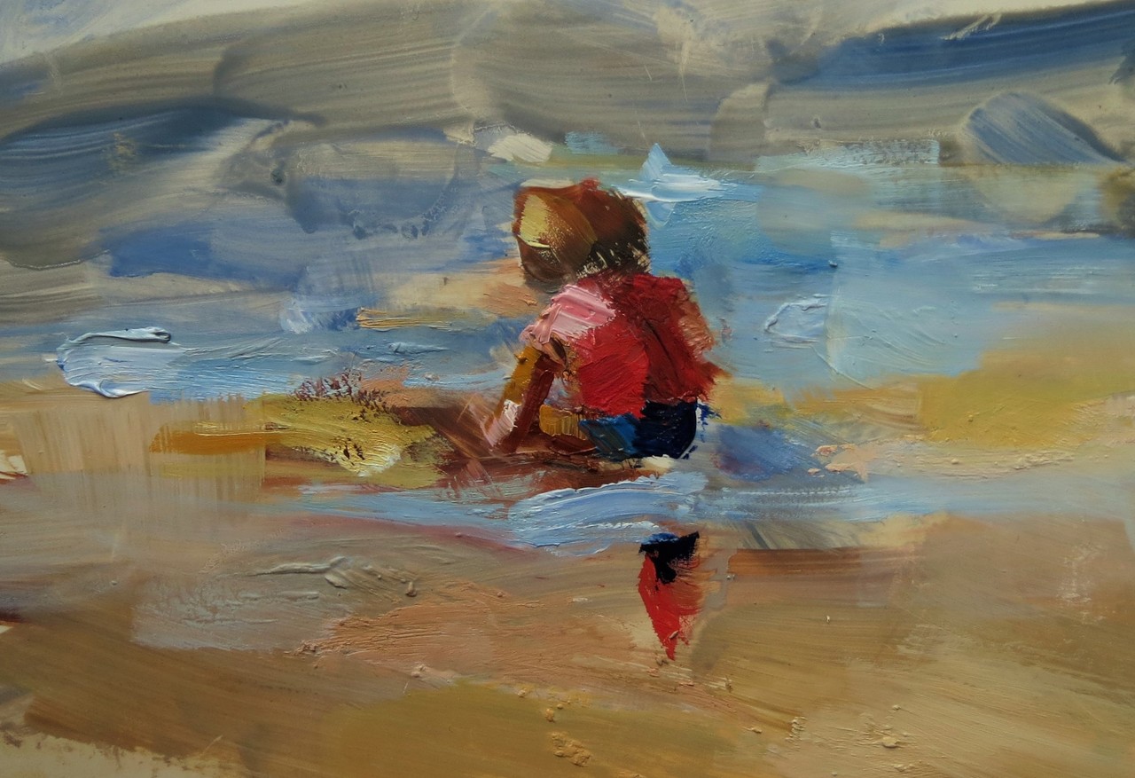 Zand en water is het enige wat hij nodig heeft voor een fijne middag met veel plezier.