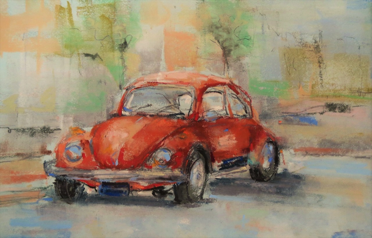 Als ik door Noordwijk rijd, word ik altijd blij als ik deze mooie rode kever weer zie staan.