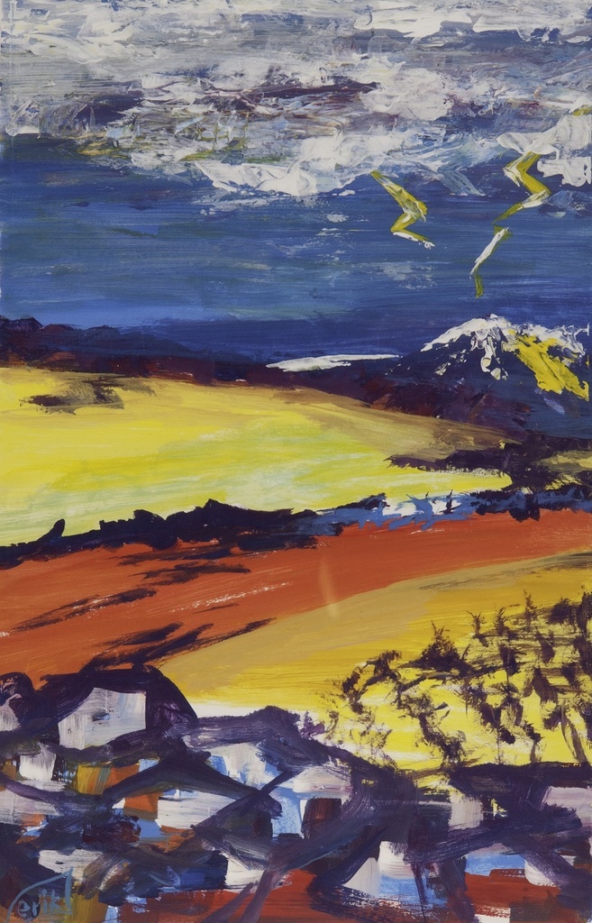 Orage. Onweer in La Provence Frankrijk. Acryl op papier. 29 x 47 cm. Af depot € 1815,- Inclusief 21 % BTW. Stichting Inderdaad is verkopende partij. Kvk 08164927 3971CC 3 Driebergen