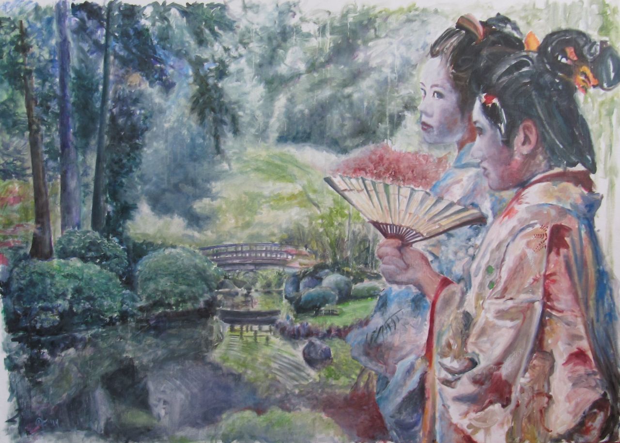 Geisha's bij vijver