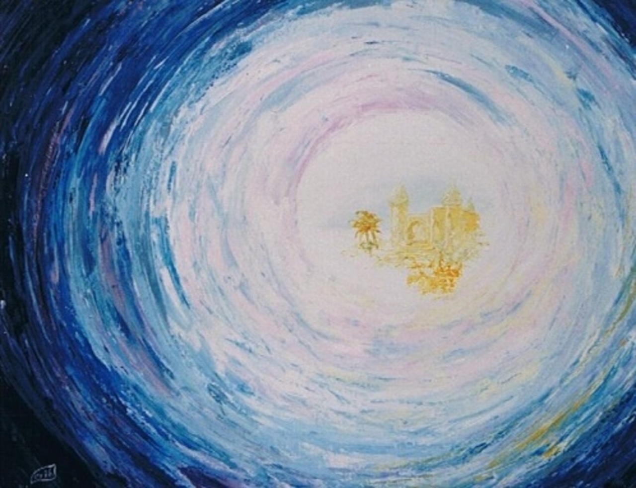 Levenstunnel van de geest. Olieverf. Ingelijst 72 x 57 cm inclusief. € 6445,- Inclusief 21 % BTW. Af depot. Stichting Inderdaad is verkopende partij. Kvk 08164927 3971CC 3 Driebergen