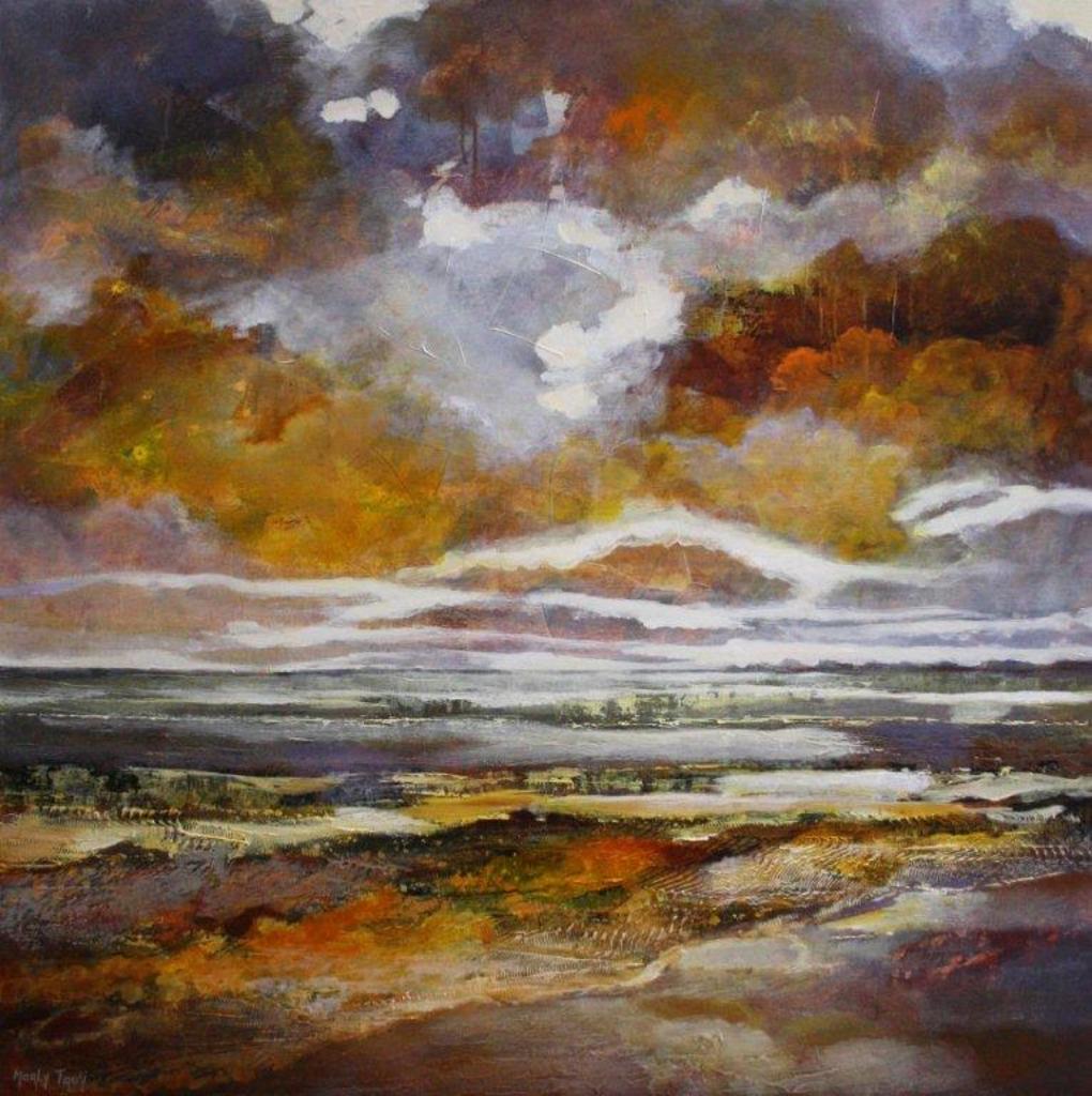 Marly Freij maakt grote kleurrijke, maar ook meer ingetogen schilderijen in gemengde techniek, met name sferische landschappen en abstracte composities